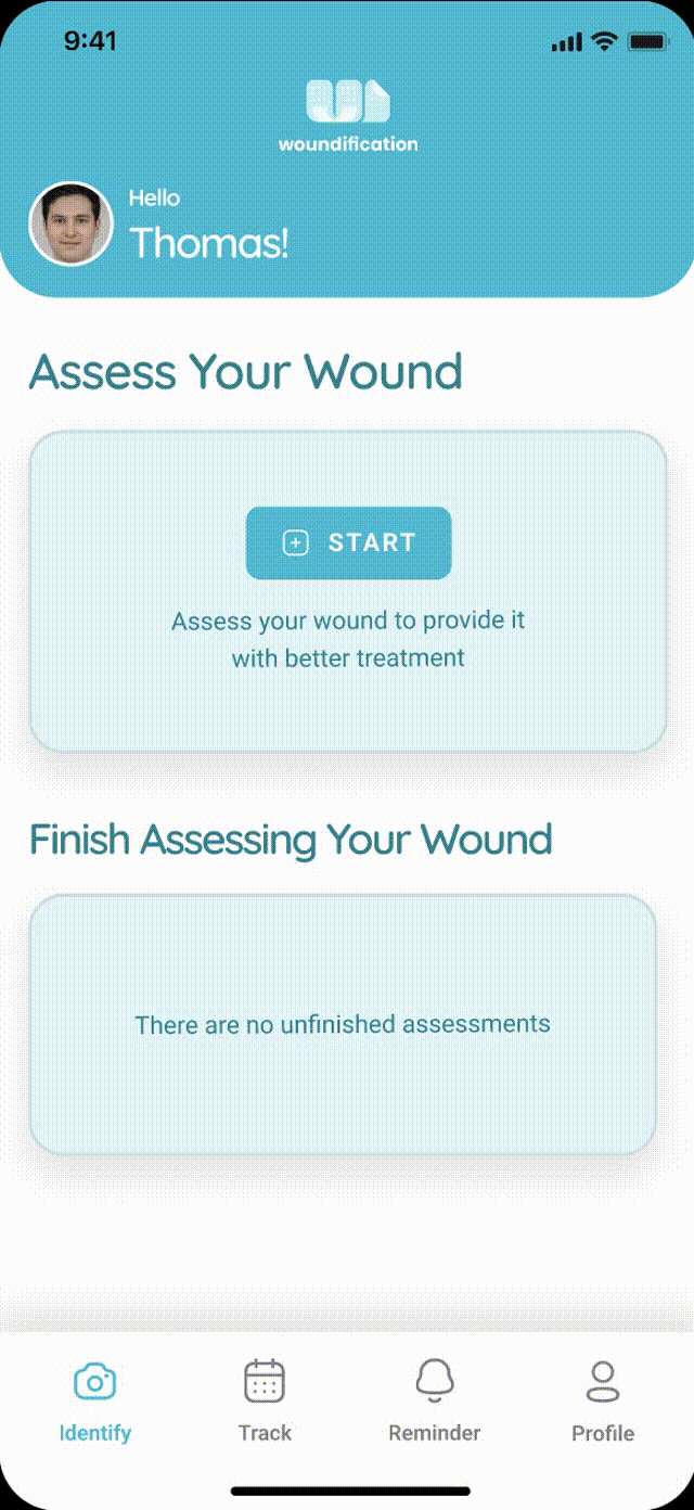A mobile application that uses the device's camera to analyze wounds and provide personalized suggestions to treat them via non-medical suggestions, reminders, and wound tracking. The goal is to improve patients’ outcomes through precise assessment and effective wound care management.
