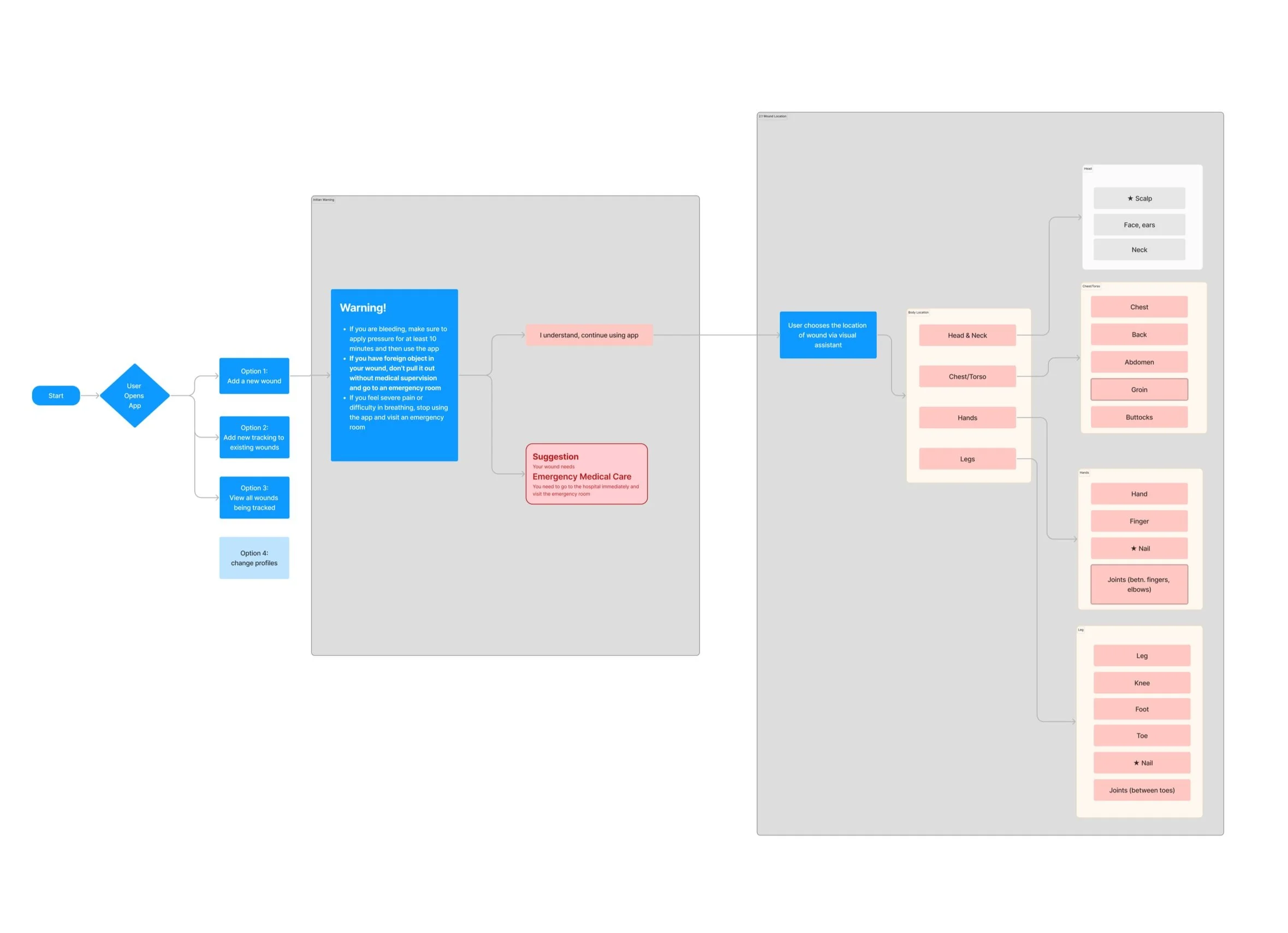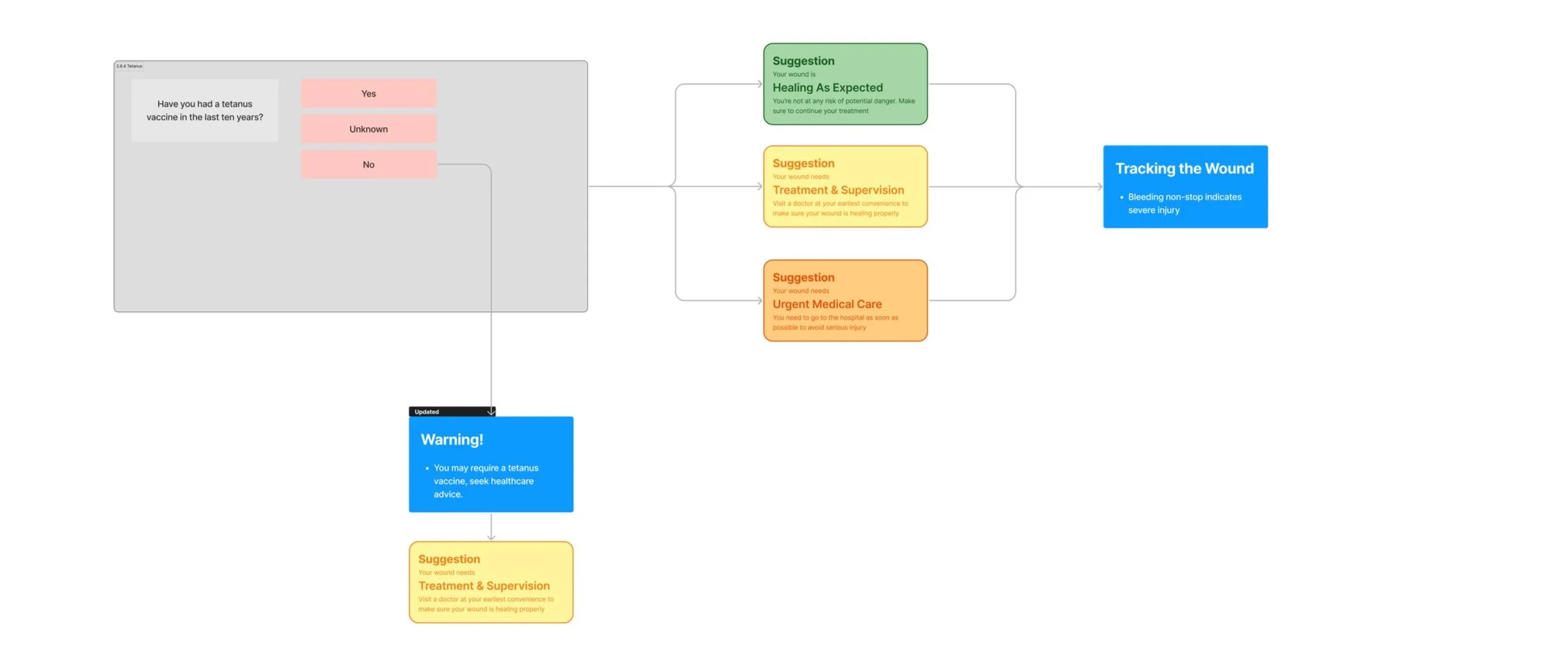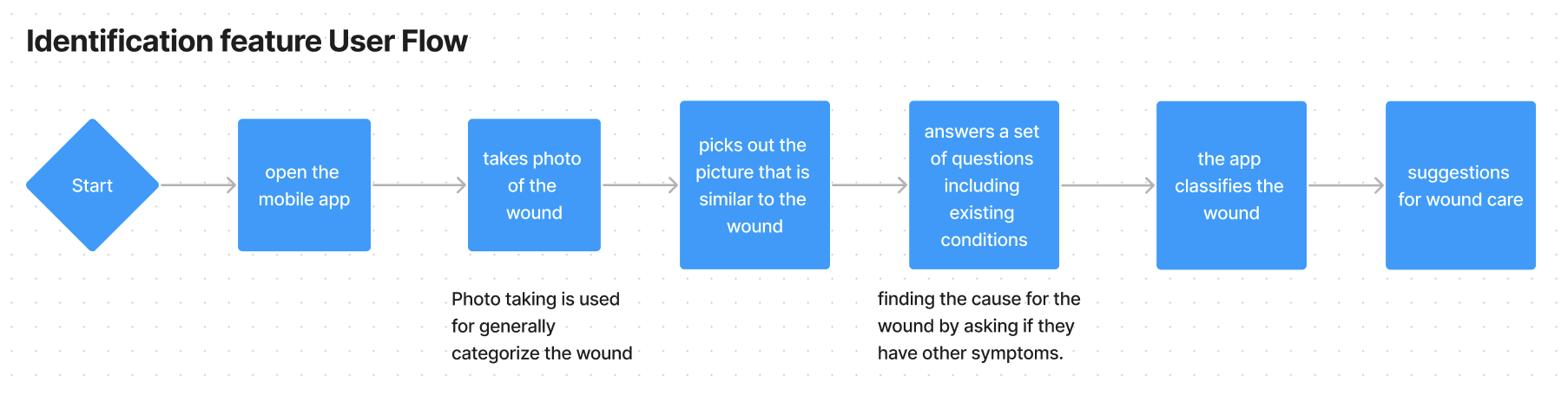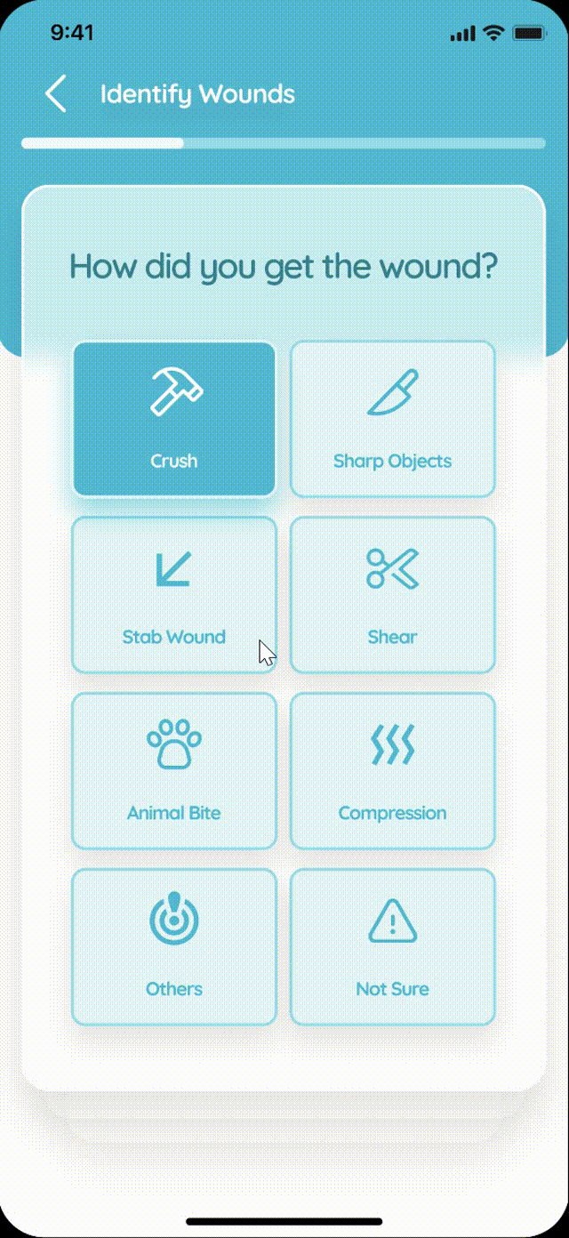 We are designing a wound identification system that collects wound information from users and provides non-diagnostic treatment suggestions accordingly. Part of the wound information will be collected by the phone camera, and the rest of the wound information will be collected through a questionnaire.